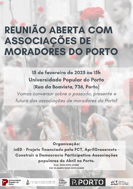 Tendo em conta os objetivos do Projeto AprilGrassroots, relacionados com a análise da constituição das associações no pós-25 de Abril e com a evolução das suas práticas, relacionados com o conhecimento de linhas de articulação existentes entre as associações, tendo ainda em conta partilhas relevantes que foram surgindo sobre histórias interassociativas do período pós-revolucionário, no dia 15 de fevereiro de 2025 decorreu na Universidade Popular do Porto um primeiro encontro entre moradores e sócios/sócios fundadores/dirigentes associativos de algumas associações da cidade. Nesta reunião estiveram presentes membros de 6 associações de moradores.