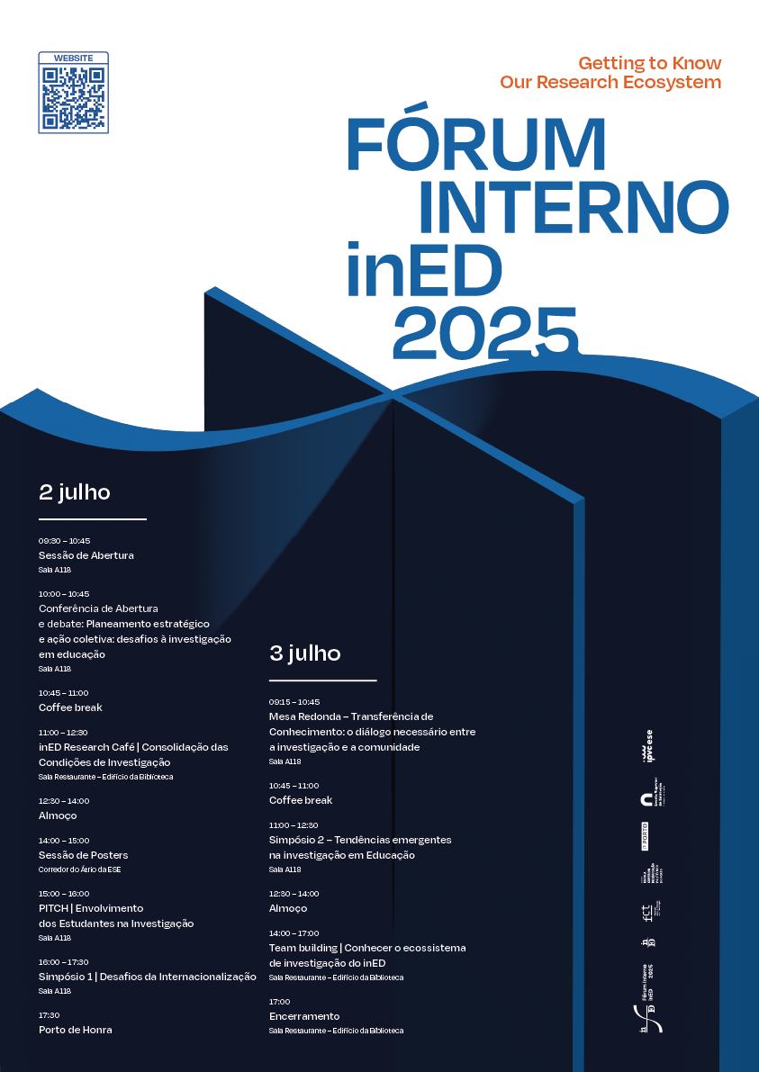 Esta mesa-redonda faz parte da 3.ª Edição do Fórum Interno do inED (Centro de Investigação e Inovação em Educação) e terá lugar na Escola Superior de Educação do Politécnico do Porto.